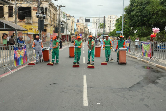 A Subsecretarias de Limpeza Pública, Praças e Jardins e de Iluminação Pública atuam de forma ininterrupta no local do desfile