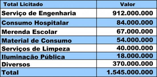 Para manter o pleno atendimento na Saúde, foram investidos R$ 84 milhões em consumo hospitalar. Na educação a merenda escolar representou um investimento de R$ 67 milhões, que inclui a mão de obra nas escolas. A compra de material de consumo, como vacina, totalizou R$ 54 milhões. As licitações nos serviços de limpeza somam R$ 40 milhões. Um total de R$ 370 milhões foi investido em diversas áreas, como na aquisição de veículos, como ambulâncias, transporte escolar e na compra de uniformes escolares e material didático.