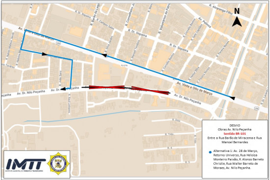 IMTT informa interdições em trechos da Nilo Peçanha e Felipe Uébe nesta terça