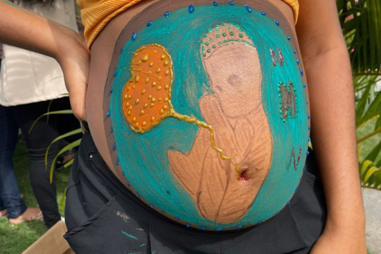 Essa é a 2ª edição do Projeto ArteMães, com bate papo informal, atendimentos sociais, além da aplicação da técnica de pintura do ventre materno, o belly painting