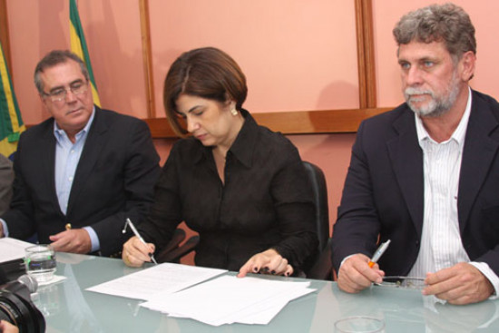 Numa solenidade histórica, a Prefeita Rosinha Garotinho assinou, nesta terça-feira (21), convênio com a Secretaria Especial de Portos da Presidência da República. O convênio de cooperação viabiliza a implantação do Complexo Logístico Naval Farol-Barra do Furado, empreendimento logístico de interesse nacional, que demandará investimentos da ordem de US$ 1 bilhão por parte da iniciativa privada e R$ 173 milhões em obras de infraestrutura, custeadas pelo Consórcio Intermunicipal Campos-Quissamã, com a contrapartida dos governos estadual e federal, com R$ 20 milhões e R$ 50 milhões, respectivamente. O ato solene foi realizado no auditório do Centro Administrativo José Alves de Azevedo, sede da prefeitura. Assinaram o documento, a Prefeita Rosinha Garotinho e o diretor da Secretaria Especial de Portos da Presidência da República, Luiz Jorge Zuma e Maia, junto com o subsecretário Estadual de Transportes, Delmo Pinho, o Prefeito de Quissamã, Armando Carneiro, e o presidente da Câmara de Vereadores de Campos, Nelson Nahim.