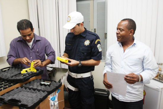 Os 25 kits de armas de conditividade elétrica M26 (taser), mais conhecidas como armas não letais, com todos os complementos, inclusive 225 dardos elétricos, chegaram a Campos na tarde desta segunda-feira (27). A Guarda Civil Municipal recebeu o equipamento da Secretaria Nacional de Segurança, ligada ao Ministério da Justiça, através do Programa Nacional de Segurança Pública com Cidadania (Pronasci). O município é o terceiro do estado a contar com um armamento moderno, de alta tecnologia e de qualidade, além de ser não letal, para proteger a população e também os guardas.