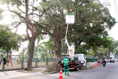 Diversas praças do município estão passando por manutenção. Nesta quarta-feira (06), a secretaria de Serviços Públicos, por meio de uma empresa contratada, realizou a poda de árvores na Praça Nilo Peçanha, no Jardim São Benedito. O local já havia recebido um novo projeto de paisagismo, a recuperação de jardins e canteiros, além do plantio de aproximadamente seis mil mudas de plantas ornamentais, como crótons, antúlios, barbas de serpentes, mini ixoras, entre outras plantas de floração.