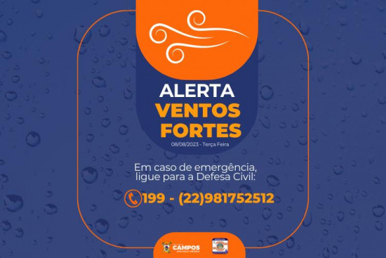 Alerta da Defesa Civil de Campos para possíveis rajadas de ventos hoje