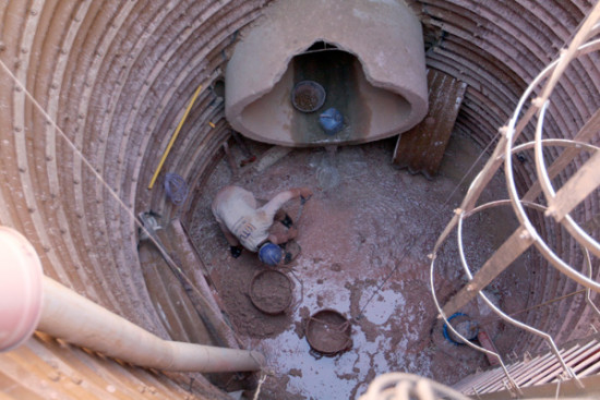O ponto de visita que está sendo construído tem sete metros de profundidade e toda essa estrutura é necessária em razão do declive da Rua 1, que teve que ser compensado. A ligação com a Lagoa do Vigário vem sendo feita através da tubulação que atravessa a linha férrea e a Avenida Carmem Carneiro. Três operários trabalham de maneira intensiva no local para a conclusão da ligação, que vai ter 22 metros. Um ventilador externo garante a renovação de ar para que o trabalho possa ser realizado, já que até agora, foram executados os seis primeiros metros da tubulação.