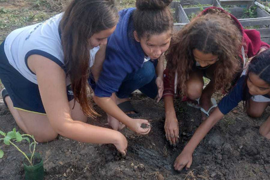 Os alunos participaram de panfletagem e ainda plantaram uma horta. A escola também desenvolve, através do projeto Integrador, estudos independentes, no qual os alunos desenvolvem pesquisas e coletam dados