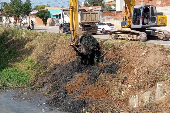 A ação é de retirada dos detritos do leito do canal; do mato das margens; e a retificação do talude (rampas)