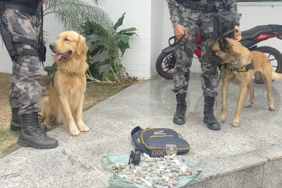 Cão do GOC encontra drogas em apoio a operação a Polícia Militar em Travessão