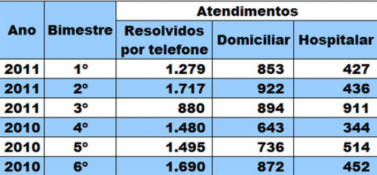 Desse total, 2.669 atendimentos foram feitos nas próprias residências dos pacientes, enquanto 1.774 pessoas precisaram ser removidas para uma unidade hospitalar. Os outros 3.876 procedimentos foram resolvidos pelo próprio telefone, com a ajuda de médicos reguladores. Para o Vice Prefeito, Doutor Chicão, o programa é um dos que mais se destacam entre as ações implementadas na área da saúde desde 2009.