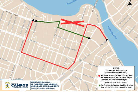 Prefeitura orienta desvio de trânsito em função das obras na XV de Novembro