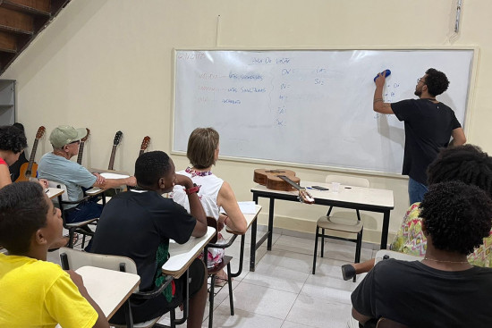 Além dos cursos profissionalizantes, as oficinas também chamaram a atenção das pessoas para a inscrição. A oficina de canto, coral e violão já reúne alunos de todas as idades, como a dona Gloria, de 79 anos.