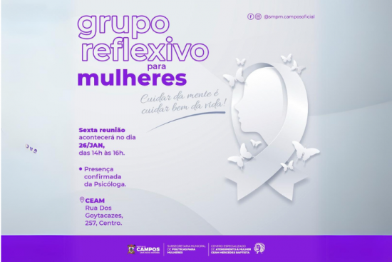 Grupo Reflexivo para Mulheres nesta sexta no Centro de Atendimento à Mulher