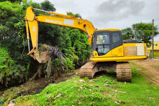 Trabalho coordenado pela Defesa Civil é feito de forma integrada com as secretarias de Obras e Serviços Públicos para reduzir risco de alagamentos na Linha do Limão, na Baixada Campista