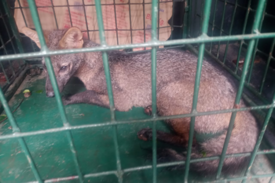 Cachorro-do-mato jovem é resgatado em quintal de residência