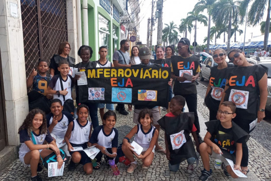 Alunos das E.M Ferroviário Jacy da Silva Barbeto e Dr. Luiz Sobral levaram faixas e cartazes para conscientizar a população contra a dengue