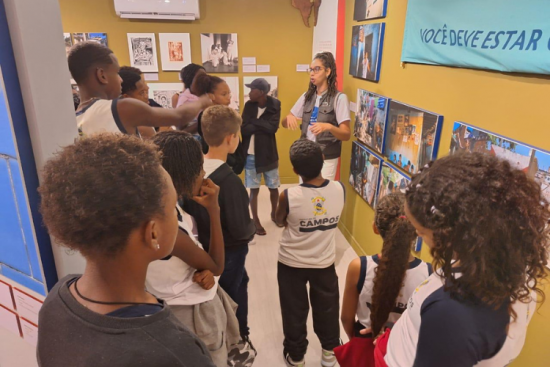 Os alunos puderam observar obras como pinturas, fotografias e textos em estande montado na Praça do Santíssimo Salvador