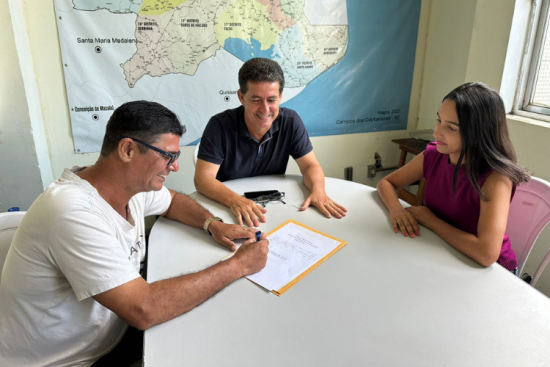 No início da manhã, o secretário Almy Júnior recebeu o representante dos produtores rurais para assinatura do projeto