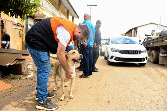 Agentes do setor de animais peçonhentos e de controle de roedores, além de dois veterinários, foram verificar o impacto da enchente nos animais domésticos, principalmente cães e gatos