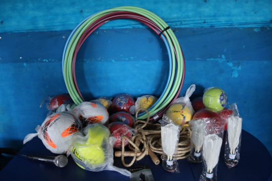 Ao todo, foram 52 itens, incluindo bolas de futsal, vôlei, handebol, apito, bambolê, peteca, corda e mini traves de futebol