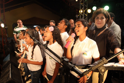 “É melhor fazer investimentos nas crianças hoje, cuidar bem delas, para evitar ter que punir amanhã, quando forem adultas", disse Rosinha, ao receber outra homenagem, desta feita no palco, por um grupo de crianças na faixa etária entre 6 e 17 anos, assistidas pelo Núcleo do CVA (Centro de Vivência e Aprendizagem), mantido no bairro pela Fundação Municipal da Infância e da Juventude, que beneficia 280 crianças em turnos que revezam com horários das escolas. As crianças, que integram a orquestra do CVA apresentaram números musicais e foram incentivadas pela prefeita Rosinha, e aplaudidas pelo público.