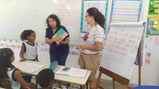 Com 30 anos dedicados à Educação na Rede Municipal, a professora Luciana Soares utiliza o Método das Boquinhas em seu processo de alfabetização, cuja proposta trabalha a consciência fonológica em crianças típicas e atípicas. Por meio da sua experiência e sua prática pedagógica, ela consegue identificar de forma rápida os alunos com dificuldade na fala e escrita e, consequentemente, propõe atividades e projetos visando auxiliar os alunos na superação das limitações.