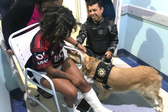 Cão da Guarda Municipal participa de socialização na pediatria do HFM
