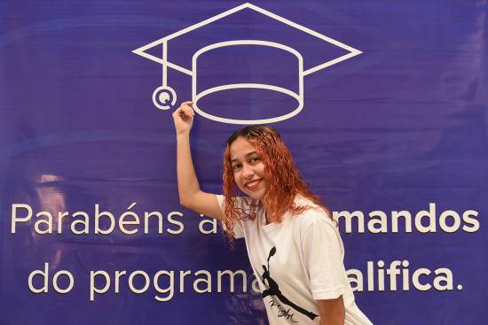 Entre os formandos estão os alunos do programa Qualifica Jovem, que fizeram cursos de manicure, cabeleireiro, barbeiro, design de sobrancelha e informática