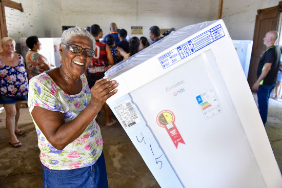 Para Maria da Glória Chagas, que teve a casa totalmente alagada na localidade de São Sebastião, a geladeira nova vai fazer diferença. “A gente fica muito feliz, né? Na minha casa a água tomou conta de tudo, perdi as coisas. Uma benção ganhar essa geladeira agora”.
