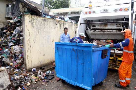 Com o mutirão de limpeza na comunidade da área central, foram recolhidos cerca de cinco toneladas de material reciclável, lixo e entulho