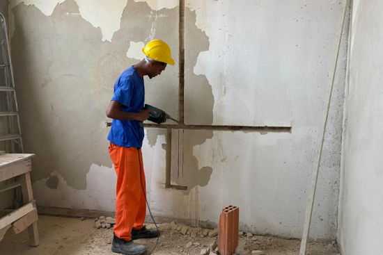 colocação de piso, pintura, instalação elétrica e sistemas de ar condicionado.