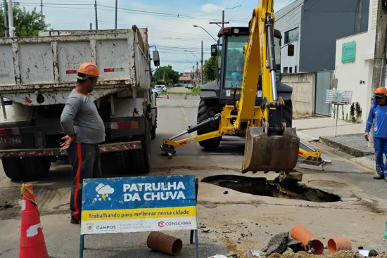 Na cidade, equipes atuam na desobstrução de bueiros e reparos de fojos. No interior, equipes atuam com a Defesa Civil e Secretaria de Agricultura para desobstruir estradas