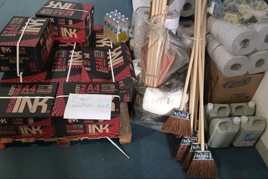 A subsecretária de Gestão Orçamentária e Financeira, Carla Patrão, acrescentou que os itens de material de limpeza, manutenção e organização que constam no planejamento para entrega são: álcool, cloro, desinfetante, detergente, esponja, esponja de aço, escova de roupa, limpador multiuso, luva látex, papel higiênico, papel toalha, sabão em barra, sabão em pó, saco de lixo (100ml e 200 ml), pá de lixo, pano de chão, rodo e vassoura piaçava.