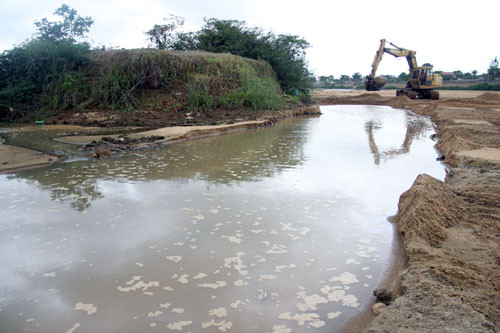 Uma escavadeira hidráulica iniciou nesta quinta-feira (15) o trabalho de remoção de banco de areia no Rio Paraíba do Sul, na altura da comunidade do Matadouro, com o objetivo de aumentar a vazão de água a ser bombeada para o Canal Coqueiros, minimizando os efeitos da longa estiagem que já prejudica produtores rurais da Baixada Campista. A expectativa é que a ação da Secretaria de Agricultura e Pesca em parceria com a Cooperativa Agroindustrial do Estado do Rio de Janeiro (Coagro) e a Associação Fluminense dos Plantadores de Cana (Asfluscan) seja concluída em quatro dias.
