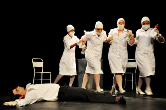 A peça "Jogos de Massacre”, de Eugène Ionesco, lotou o Teatro de Bolso Procópio Ferreira, na noite desta quinta-feira (15), o espetáculo dirigido por Maria Helena Gomes, faz parte da Triologia do Teatro do Absurdo. A peça, encenada pelos alunos do curso livre de teatro da Fundação Cultural Jornalista Oswaldo Lima, prossegue em cartaz até o próximo domingo (18), a partir das 19h. A peça discute as mazelas humanas e tudo que é considerado normal pela sociedade hipócrita. Revela o real como se fosse irreal, com forte ironia, intensificando bem as neuroses e delírios dos personagens.
