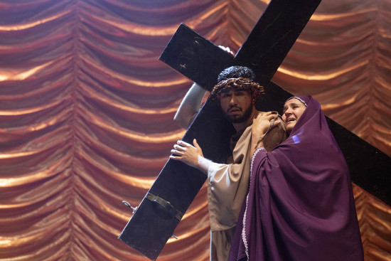No palco, Breendo Moraes viverá (Jesus), junto de Jaqueline Forte, que dará vida a (Maria). A Peça terá uma inovação, dentro da narrativa, começando com o Coral do Ministério Blessed, que também terá seus cantores atuando. Os atores e atrizes encenarão, no início, a dor, o sofrimento e a morte de Jesus Cristo. Em seguida, entra Maria, interpretada pela coralista Jacqueline Forte, mostrando o seu sofrimento. Na sequência, a peça exibirá uma reflexão sobre a entrega de Jesus Cristo por nós.