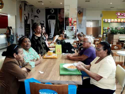 Embora o grupo de convivência dos idosos seja formado por homens e mulheres, somente elas quiseram participar das atividades. Mariza D´Angelo diz que todo ano, no mês do idoso, é oferecida uma atividade para eles e, desta vez, foi o passeio ao shopping.