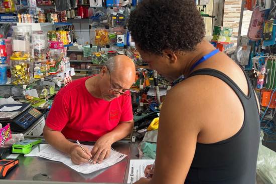 Equipe da secretaria iniciou as atividades no bairro na sexta-feira (6), visitando estabelecimentos comerciais para a captação de vagas de trabalho a serem disponibilizadas dia 14 no CIEP Wilson Batista