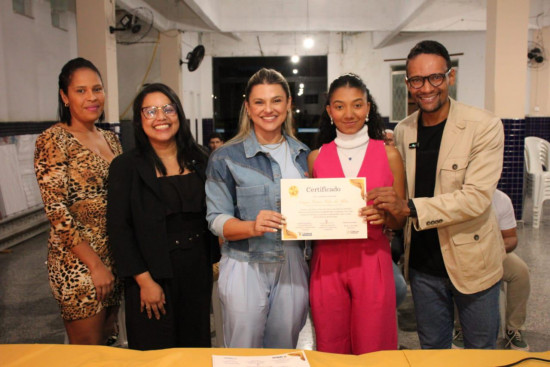A primeira-dama Tassiana Oliveira prestigiou a formatura dos alunos do curso de Costura Industrial, ofertado pela Secretaria de Qualificação e Emprego, que formou sua terceira turma no 18º distrito de Campos