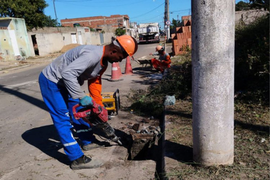 Equipe de manutenção de vias da Secretaria de Serviços Públicos atua na Penha