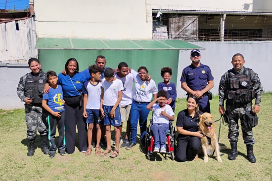 Na ocasião, as crianças participaram de um momento de acolhimento e bem-estar através da interação com os cães da Guarda