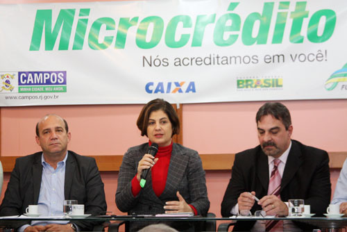 A Prefeita Rosinha Garotinho assinou nesta terça-feira (11), o convênio com a Caixa Econômica Federal para atuar na liberação de financiamentos para micro e pequenas empresas. Em seguida, no auditório Edgar Coelho dos Santos, também na sede da prefeitura, foram assinados os contratos de equalização das 100 primeiras empresas contempladas com o Programa de Microcrédito do Novo Fundecam (Fundo de Desenvolvimento de Campos). Na oportunidade estavam presentes o vice-prefeito, Doutor Chicão; o presidente do Fundecam, Otávio Amaral, o secretário de Agricultura, Eduardo Crespo, o superintendente regional da Caixa Econômica Federal, Arnaldo Barcelos Neto e pequenos empreendedores.