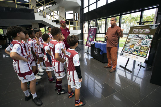 Jovens atletas visitam exposição “Memorial do Esporte” no foyer do Trianon