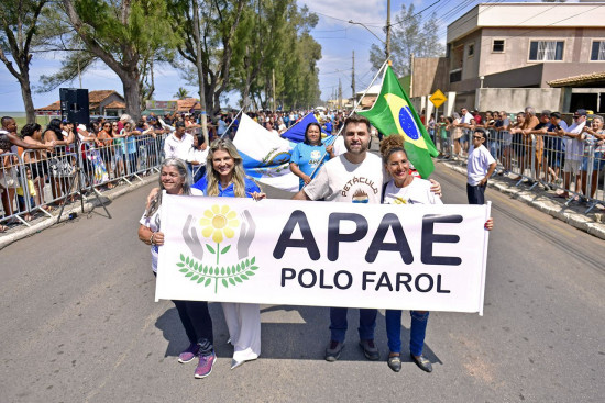 Famílias, tradição e emoção no desfile cívico, promovido neste domingo (14), em Farol de São Tomé, reunindo cerca de 15 instituições da Baixada Campista. O evento marcou a união entre as unidades públicas - municipais e estaduais - e privadas. Com apoio da Guarda Civil Municipal e da Secretaria de Segurança e Ordem Pública, o evento contou com abertura realizada pelo prefeito Wladimir Garotinho; a primeira-dama Tassiana Oliveira; presidente da Câmara Municipal, Frederico Rangel; pela subsecretária de Ensino da Secretaria Municipal de Educação, Ciência e Tecnologia (Seduct), Célia Ferreira; e pela diretora Regional de Educação, Rita Abreu. A diretora pedagógica, Viviane Terra; e o coordenador de Bandas e Fanfarras, Edilson Cruz, também marcaram presença, junto à equipe organizadora do evento, ligada à Diretoria Regional de Educação.