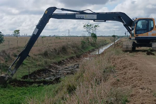 A limpeza de 2,3 quilômetros de canal melhora a drenagem e favorece irrigação em áreas de cana, soja e pecuária de corte