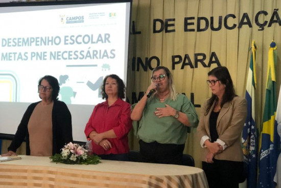 A secretaria abriu sua fala abordando metas do PNE como a universalização do ensino fundamental de nove anos, a alfabetização até o 3º ano, a ampliação da educação em tempo integral e a melhoria da qualidade medida pelo IDEB. “Estamos vivendo um momento de transição do PNE. Isso exige da nossa equipe uma análise profunda dos dados para encontrar soluções produtivas e eficientes”, explicou Tânia, lembrando que Campos possui mais de 80 creches e 150 escolas, o que torna a gestão ainda mais complexa.