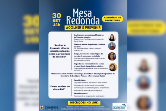 Mesa redonda “Acolher é Prevenir” encerra programação do Setembro Amarelo