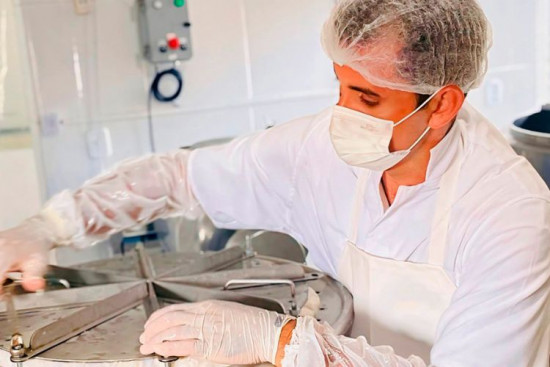 Ele explica que a produção do queijo gigante mobiliza toda a equipe. “Paramos um dia da nossa produção só para o queijo. Selecionamos os leites, fazemos análise, seguimos para a pasteurização, que é fundamental, depois para a coagulação e moldagem. Todo o processo é feito com muito cuidado, higiene e carinho. O tempo estimado de maturação é de 22 dias”.