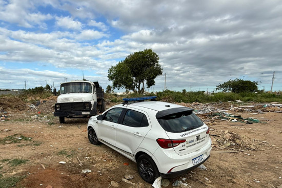 Nesta quarta-feira (26), agentes da Postura de Campos flagraram caminhões despejando resíduos em terreno no Flamboyant, a poucos metros de um dos 12 PEVEs espalhados pela cidade