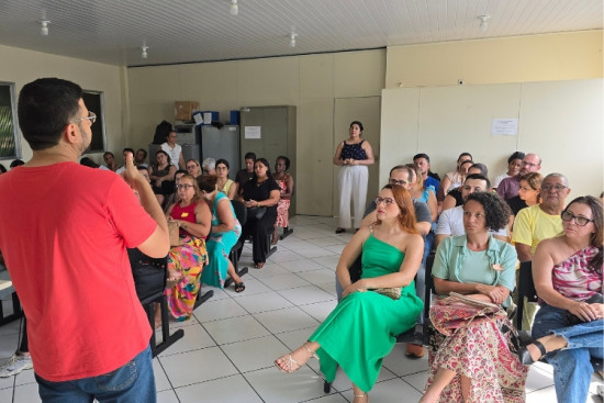 Além das discussões teóricas, a oficina promoveu uma atividade prática em que os profissionais foram divididos aleatoriamente em grupos para analisar casos, semelhantes aos atendidos diariamente pelos serviços da rede. A coordenadora de Saúde Mental, Jhayana Lins, destacou a importância dessa dinâmica para fortalecer a articulação entre os profissionais. “A proposta do dia foi proporcionar um espaço de construção e troca entre profissionais da RAPS. A partir de casos concretos, eles puderam exercitar como uma abordagem integral pode contemplar necessidades complexas, que envolvem múltiplos determinantes sociais. É um exercício de articulação da rede, baseado na educação permanente e continuada”, afirmou.