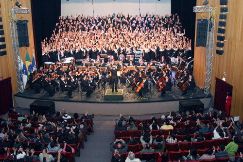 O concerto com ares de super produção, colocou no palco 400 coralistas, emocionando a platéia com canções marcantes, como “Bolero”, de Maurice Ravel e “Fortuna”, da ópera Carimna Burana, de Carl Orff. Homenageando o Brasil, orquestra e coral reverenciaram 11 estados com canções típicas. Encerrando o concerto, foi executada a canção “Aleluia do Oratório do Messias”, de G. F. Handel.